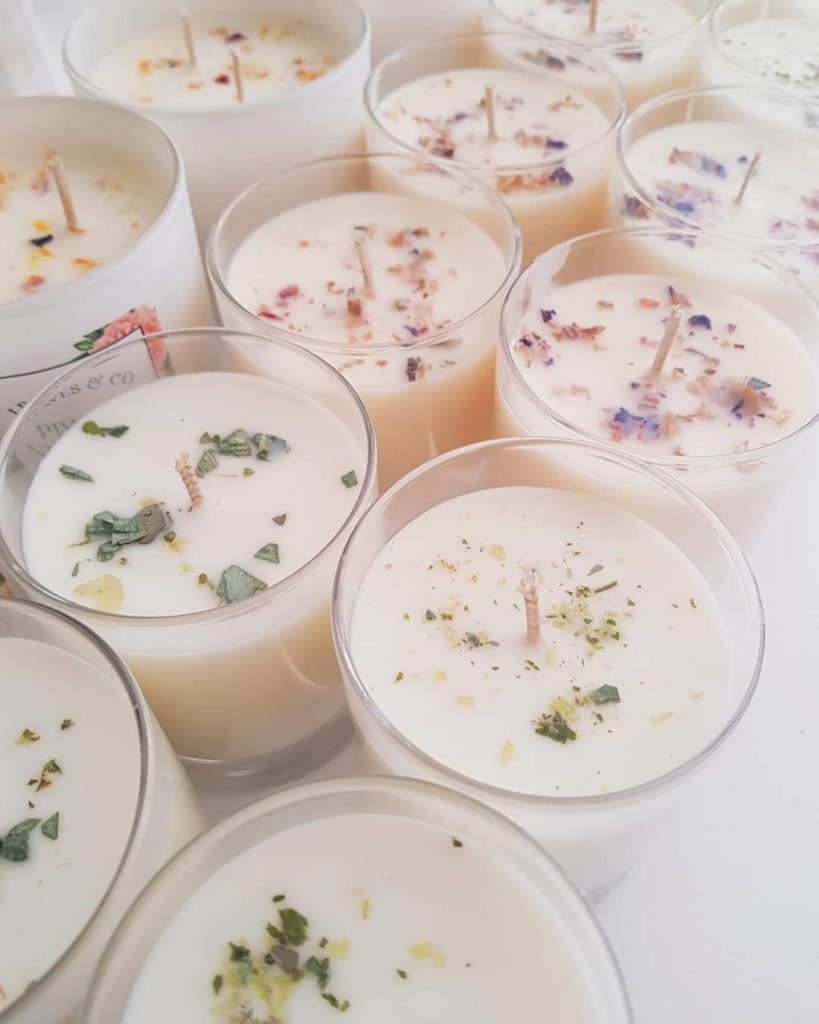 Bougies et fondants à la cire naturelle (soja, colza ou olives).